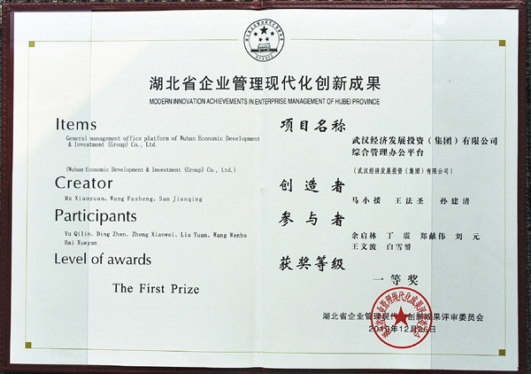 • 2010年度湖北省企業(yè)管理創(chuàng)新一等獎(jiǎng)