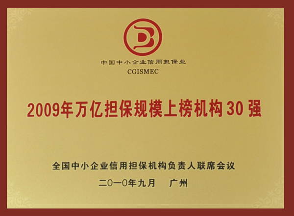 • 2009年度信用管理公司獲全國(guó)萬(wàn)億擔(dān)保規(guī)模30強(qiáng)