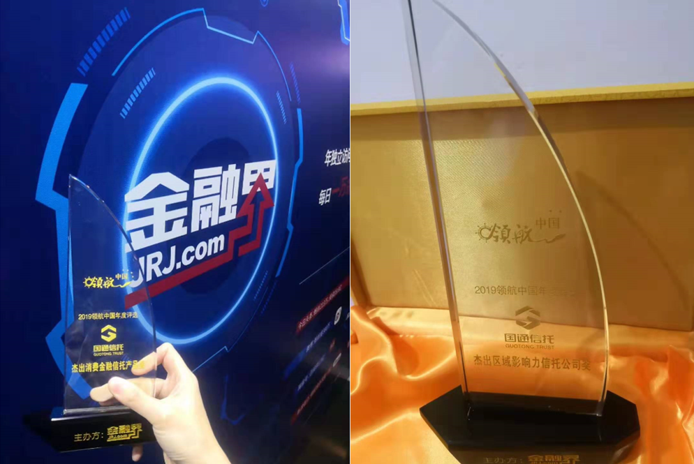 12月5日,第四屆智能金融國際論壇暨金融界“領航中國”年度盛典在北京舉行,國通信托公司憑借穩健的經營能力、卓越的創新能力及強大的區域影響力,成功榮獲“2019領航中國年度評選杰出消費金融信托產品獎”和“2019領航中國年度評選杰出區域影響力信托公司獎”。