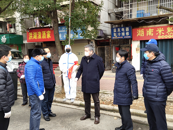2月13日上午,市國資委黨委書記、主任陳祖信,帶領(lǐng)市國資委黨委副書記、副主任程春生及市國資委宣傳處負(fù)責(zé)人等一行,來到集團(tuán)值守的硚口區(qū)韓家墩街云鶴社區(qū)調(diào)研疫情防控工作。集團(tuán)黨委委員、董事、集團(tuán)下沉硚口片區(qū)抗疫組指揮長任偉林,集團(tuán)總經(jīng)理助理、集團(tuán)下沉硚口片區(qū)抗疫組組長程馳光及相關(guān)同志陪同調(diào)研。
