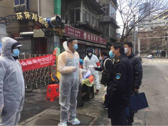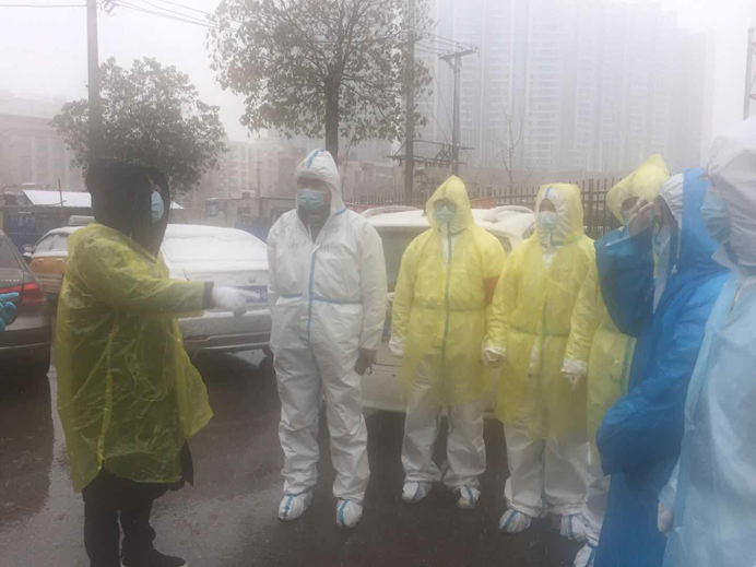 此次疫情的爆發(fā)地華南海鮮市場正位于唐家墩街,抗疫突擊隊(duì)員們毫不畏懼,堅(jiān)決服從指揮,步調(diào)一致,行動(dòng)迅速,全力投入疫情防控工作。突擊隊(duì)員們按照社區(qū)要求,背著40斤重的消毒液,從小花壇到垃圾箱,從小區(qū)門口到執(zhí)勤點(diǎn),從一樓到頂層進(jìn)行大面積消毒。為了全面排查網(wǎng)格內(nèi)“四類人員”,突擊隊(duì)員們開展測量體溫、電話訪問、信息登記等工作,嚴(yán)格排查各家各戶人員發(fā)熱情況。