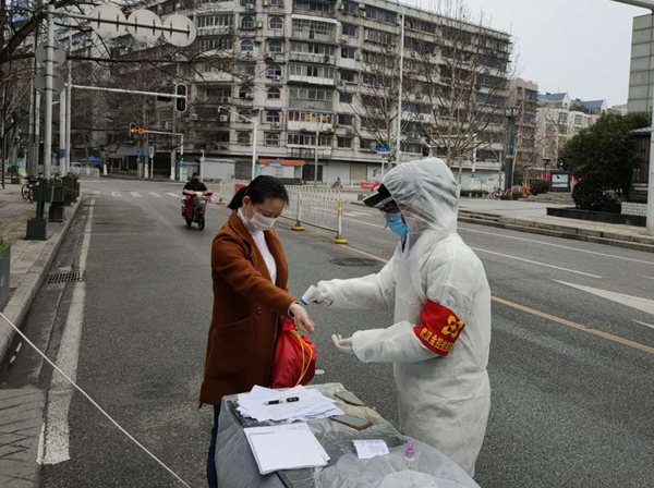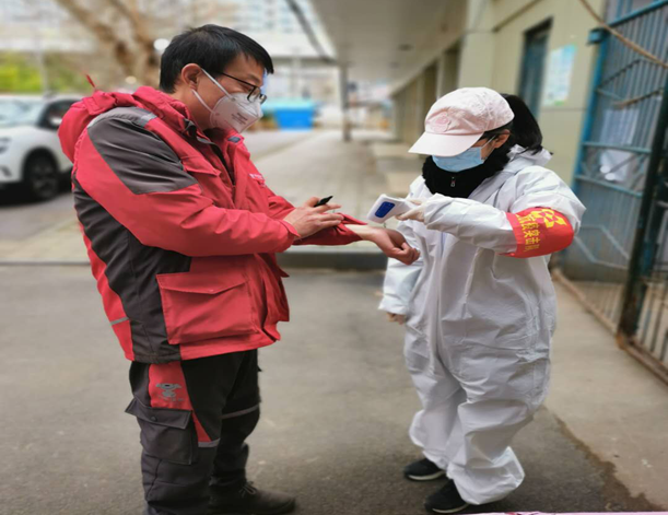 2月19日,集團機關突擊隊楊夢涯、周陽等同志值守唐家墩街西橋社區三眼橋一村。在上午勸返進出人員時,有一名居民未能出示有效證明且堅持外出,兩位女突擊隊員與組長一起,動之以情、曉之以理,堅決阻止,并要求其配合測量體溫,經連續幾次測量,均顯示發熱。突擊隊員立即聯系社區相關負責人,在突擊隊員登記該居民姓名和聯系方式后,社區安排其前往新華醫院作檢查,被醫院診斷其左肺感染,為疑似病例。2月20日,突擊隊員本著高度的責任感,繼續跟蹤病人妻子的健康狀況,對其測量體溫,在發現有發熱癥狀后,立即向社區相關負責人報告,病人妻子迅速被社區工作人員帶走隔離,女隊員們特有的細心和勇敢,及時阻斷了病毒傳播鏈條。