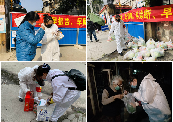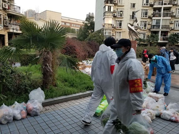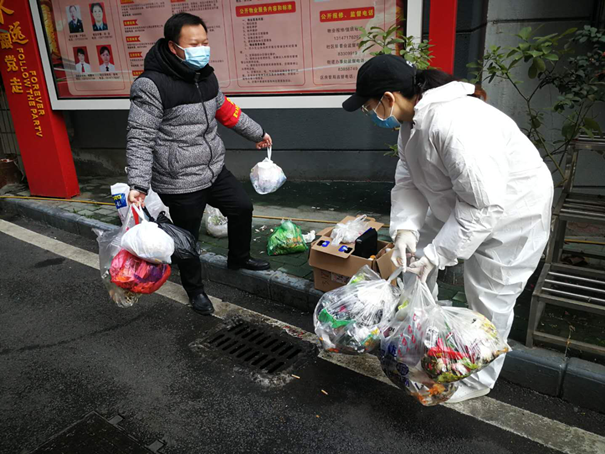 硚口區正康社區華麗花園小區比較陳舊,老年群體、困難群體較多。2月25日,由交投公司突擊隊接手后,在該小區全面實行24小時值守,嚴格管控居民進出。由于封城時間較長,老人們心理脆弱,情緒低落,生活上也出現一定的困難,需要特別的關懷與照顧。了解情況后,負責華麗花園值守的5名女員工羅娟、彭敏、魏嫚婷、潘銀銀、許蕾,迅速成立了一個關愛老年群體志愿服務隊。在嚴格值守保安全的前提下,主動向社區申請,對有困難且無人照顧的老人提供一對一的志愿服務,根據他們的生活狀況和需求給予精準幫扶。領隊羅娟同志,更是自掏腰包,積極聯系貨源,為小區的老人們免費提供愛心蔬菜,解決老人們的生活所需,讓他們安心在家無后顧之憂。志愿服務隊用自己的愛心真心換來了小區居民的一致好評,街道領導、社區領導也對她們的志愿服務給予了高度評價。