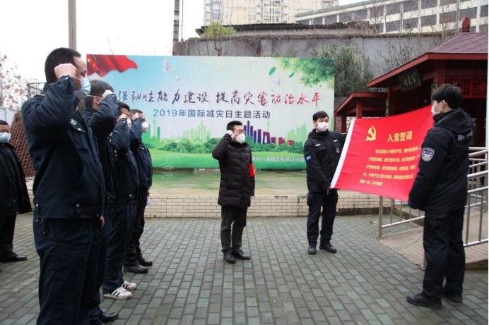 “我志愿加入中國共產黨,擁護黨的綱領,遵守黨的章程,履行黨員義務,執行黨的決定,嚴守黨的紀律……。”一聲聲鏗鏘有力的入黨誓詞在社區上空回響。日前,集團總經理助理,融威押運公司黨委書記、董事長王新剛帶領4名新發展入黨的預備黨員,在漢陽區琴段口街百靈社區防疫一線舉行了莊嚴的入黨宣誓儀式。集團黨委委員、副總經理陳衛,集團組織部負責人,融威押運公司全體黨委委員等參加了活動。