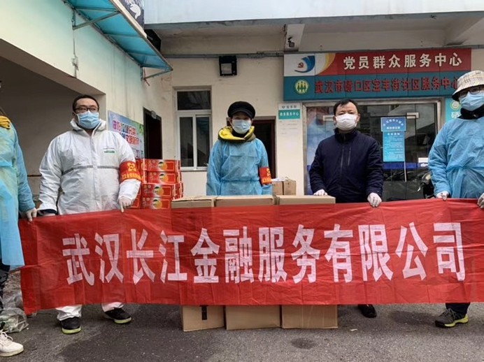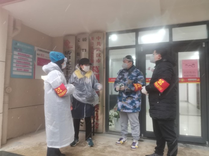 長江金融副總經理吳瓊積極響應集團黨委號召,主動請纓,迅速集結長江金融10名抗疫突擊隊員下沉到疫情嚴重的硚口區長豐街公路社區、空后社區,擔任防疫志愿者。