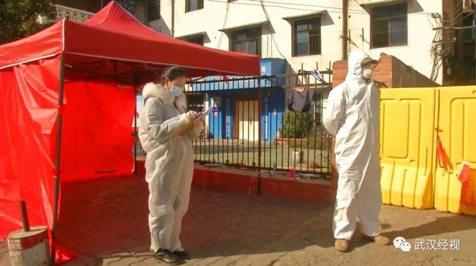 播音員:在疫情爆發之初,武漢金控集團就組織近1000多名的黨員突擊隊下沉到江漢、漢陽、硚口等三個區,參與防控工作。