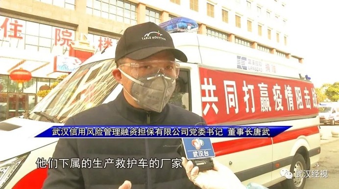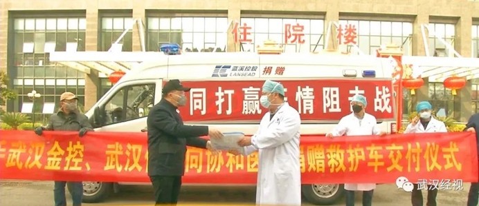武漢金控集團總經理助理,武漢開發投資公司、武漢信用風險公司黨委書記、董事長唐武:了解武漢需求后,由藍星科技控股公司下屬的生產救護車廠家,加班加點把這臺車趕制出來。由他們把車開到湖北和陜西交界的地方,再由我們把車接過來,連夜奔馳600公里,昨晚到的武漢,我們希望這個捐贈能為我們抗疫斗爭盡一點綿薄之力。