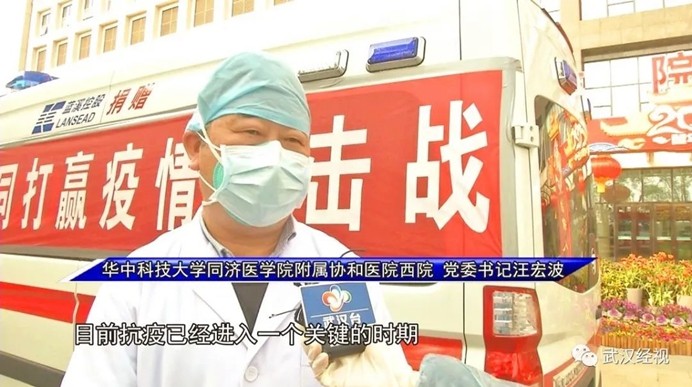 華中科技大學同濟醫學院附屬協和醫院西院黨委書記汪宏波:目前抗疫已經進入一個關鍵的時期,病人的運輸、轉運,包括出院送回家都需要救護車,這個救護車馬上就要派上用場。非常感謝公司在這個時候給我們醫務人員提供的支持和幫助。