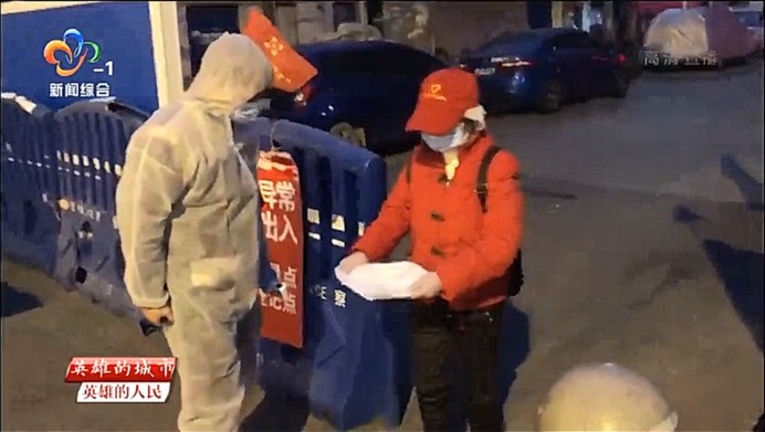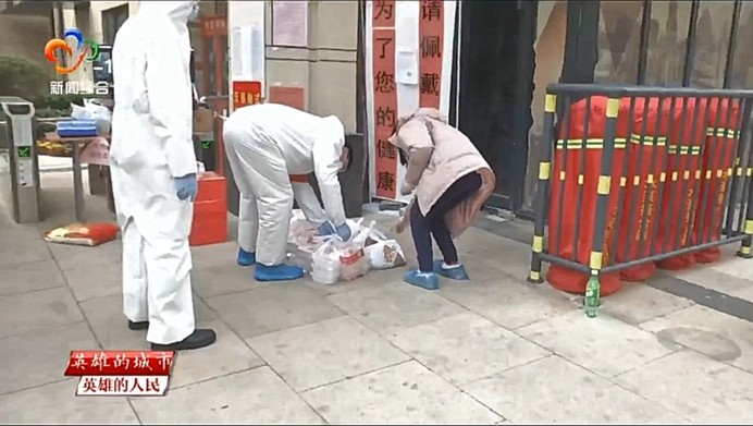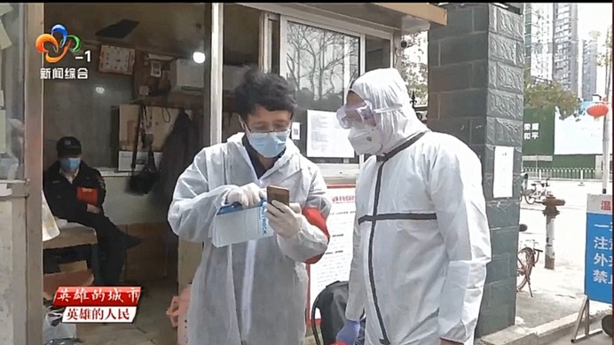 播音員:最危險的地方,黨員先上。2月初,疫情吃緊,在市委市政府號召下,武漢金控迅速組織起1000名干部職工,下沉到3個區12個街道91個社區,筑起疫情防控的銅墻鐵壁,搭起買菜送藥的愛心橋。