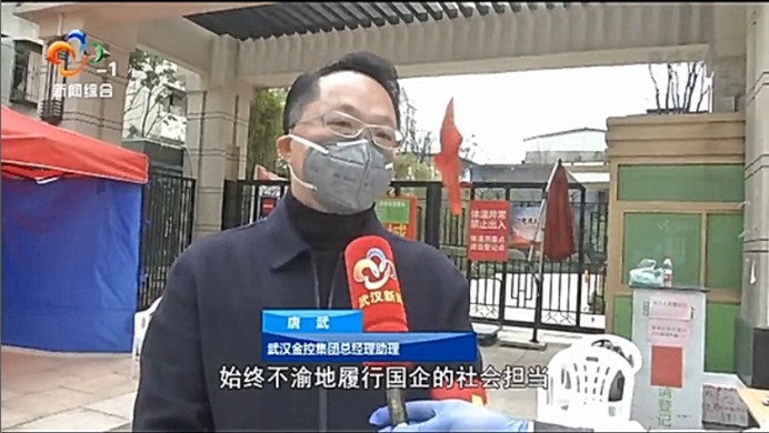 武漢金控集團總經理助理唐武:我們將繼續深入一線下沉社區,始終不渝地履行國企的社會擔當,不忘初心,不辱使命,與全市人民一道,徹底打贏這個防控新型肺炎的人民戰爭。