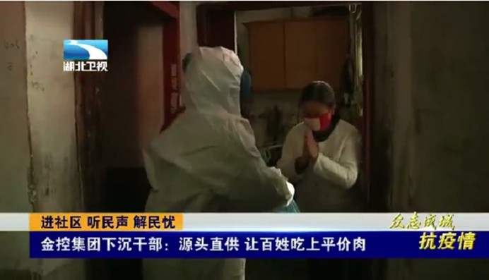 播音員:據了解,武漢金控現代供應鏈管理有限公司將逐步在下沉的91個社區開展配送服務,利用社區的網格力量將平價肉品快捷送到居民手中。