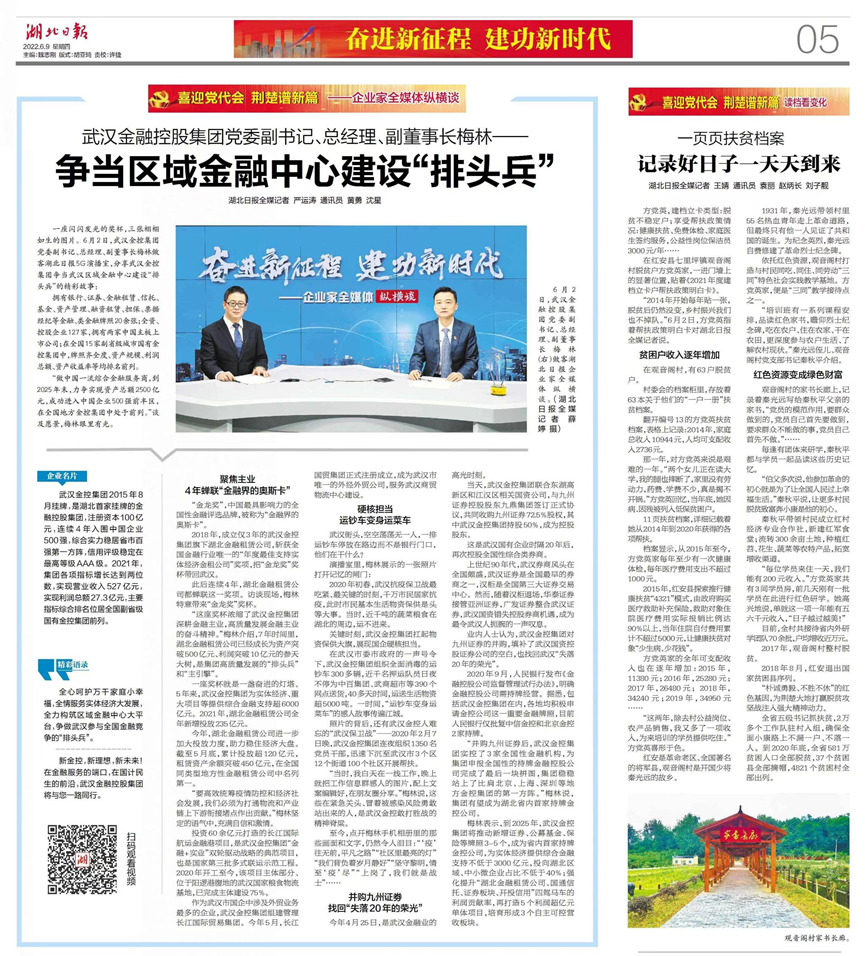 一座閃閃發光的獎杯,三張栩栩如生的圖片。6月2日,武漢金控集團黨委副書記、總經理、副董事長梅林做客湖北日報5G演播室,分享武漢金控集團爭當武漢區域金融中心建設“排頭兵”的精彩故事: