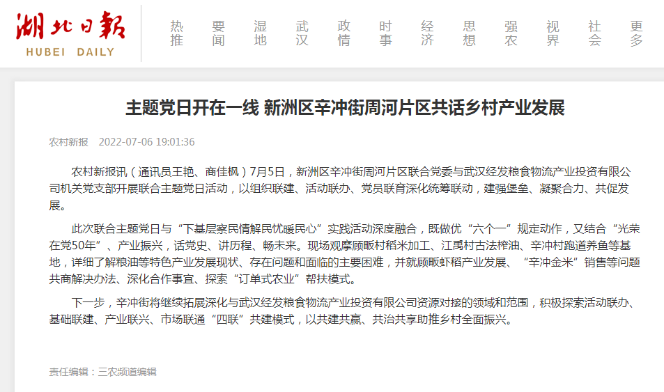 下一步,辛沖街將繼續拓展深化與武漢經發糧食物流產業投資有限公司資源對接的領域和范圍,積極探索活動聯辦、基礎聯建、產業聯興、市場聯通“四聯”共建模式,以共建共贏、共治共享助推鄉村全面振興。