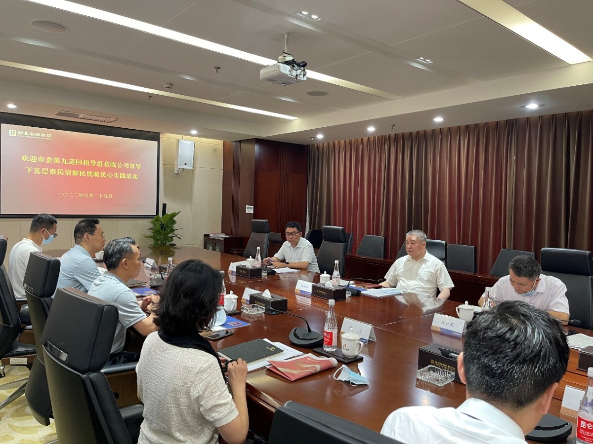 6月27日、29日,市委第九巡回指導組組長陳祖信一行分別前往集團下屬國通信托、湖北金租公司,調研指導集團黨員干部下基層察民情解民憂暖民心實踐活動開展情況,重點了解集團領導在基層聯系點調研和幫扶情況、“三張清單”收集情況、查看相關資料臺賬等。