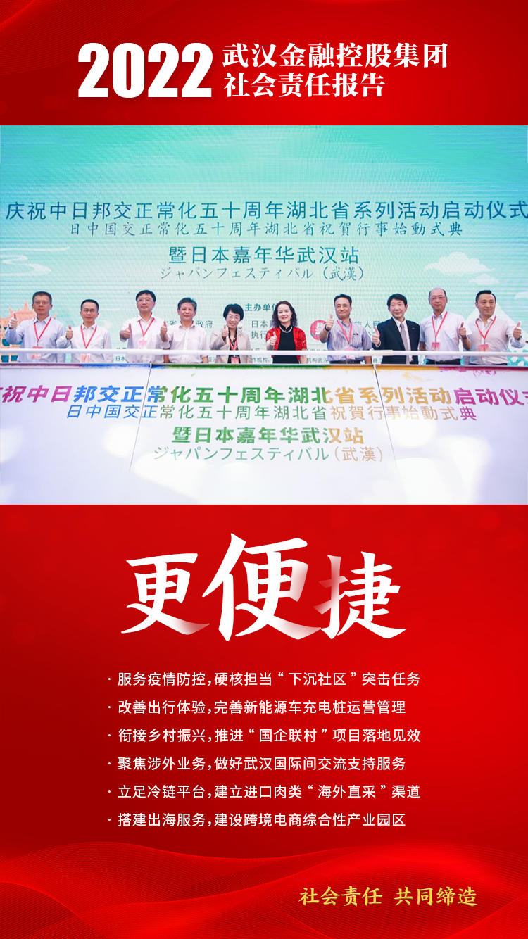 武漢金控集團始終不忘企業公民身份,堅持“金融向善”,心懷“金融為民”,不斷增強金融有效供給能力,把更多金融資源配置到經濟社會發展的重點領域和薄弱環節,更好滿足人民群眾對美好生活的向往,為社會創造更大價值。