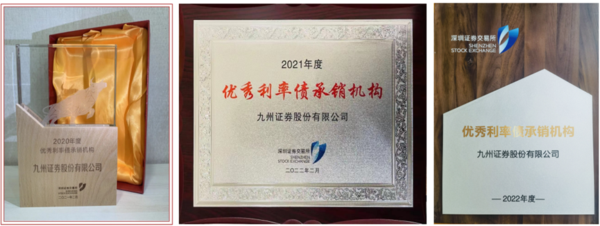 年度債券監管發展業務座談會評選的“優秀利率債承銷機構”獎項是中國債券市場具有較高關注度和公信力的重要獎項。九州證券獲得該榮譽,充分體現了公司在深交所利率債市場的綜合承銷實力。