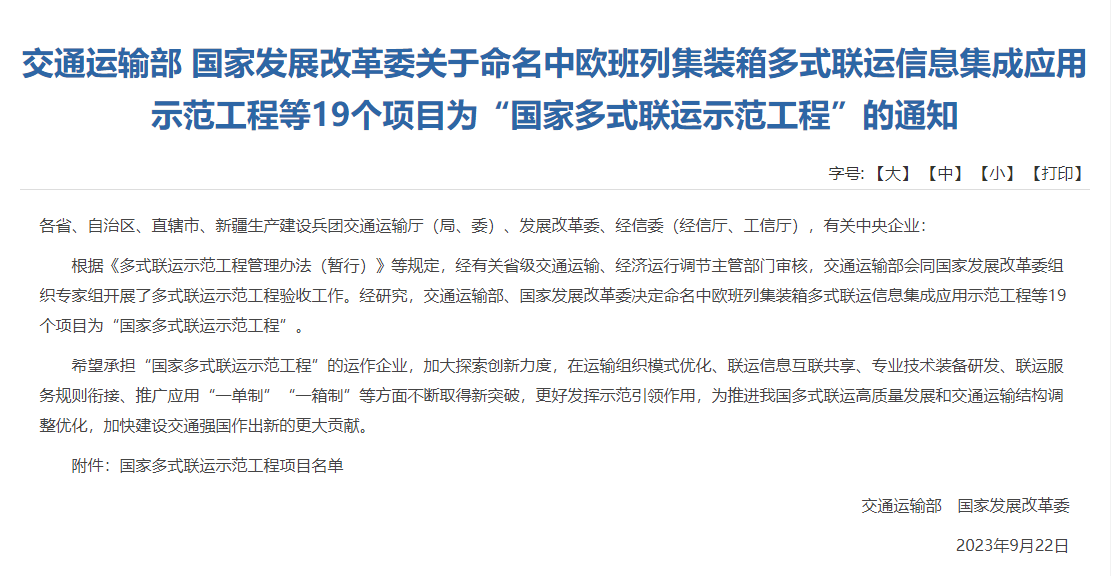 近日,交通運(yùn)輸部、國(guó)家發(fā)展改革委聯(lián)合印發(fā)通知,決定命名19個(gè)項(xiàng)目為“國(guó)家多式聯(lián)運(yùn)示范工程”。其中由集團(tuán)作為牽頭單位聯(lián)合長(zhǎng)航貨運(yùn)有限公司和中鐵武漢局集團(tuán)有限公司,打造的長(zhǎng)江經(jīng)濟(jì)帶糧食物流核心樞紐與供應(yīng)鏈金融服務(wù)平臺(tái)多式聯(lián)運(yùn)示范項(xiàng)目位列其中。