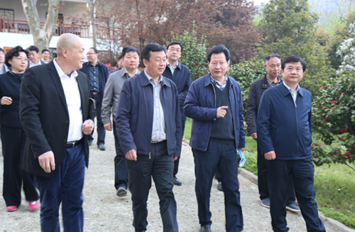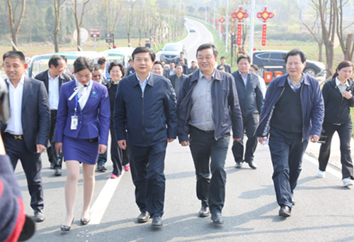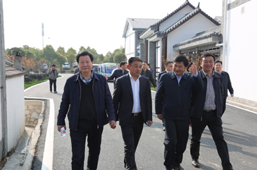到黃陂區第一站,市紀委張曙書記和集團公司馬小援董事長一行在黃陂區委主要領導的陪同下,前往黃陂區姚家集街實現脫貧致富的杜堂村,對武漢萬中集團在該村投資約3.6億元精心打造的“木蘭花鄉”景區項目開展調研。