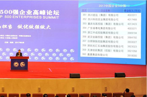 9月9日至10日,為期兩天的“2017中國企業500強高峰論壇”在江西省南昌市隆重舉行,本屆高峰論壇的主題是“創新敢為擔當,做優做強做大”。