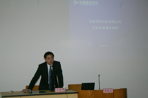 2008年3月13日,資深投資銀行家、交銀國際信托有限公司信托業務總監吳自力應邀到集團作信托業務專題講座。
